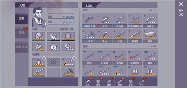 2、接着来到村庄,不要接任务把村里搜刮干净(包括第二个村庄)后去打材料把图纸换了(有过氪金可以不换,只换工作台升级材料)然后制作出全套二级甲,石矛,钉棒,木弩后去打社区,山寨(boss用燃烧箭和毒箭打死)