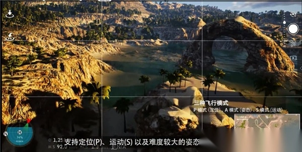 4、开启A模式后,无人机能够自动维持姿态稳定。此时,按下U键,就能关闭游戏的UI界面,无人机可悬停在空中,方便玩家欣赏游戏里的优美画面。