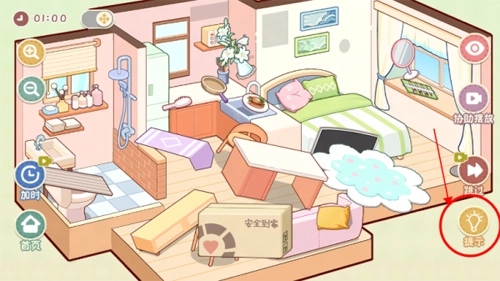4、以搬家日记关卡为例,利用游戏所提供的道具来整理房间。