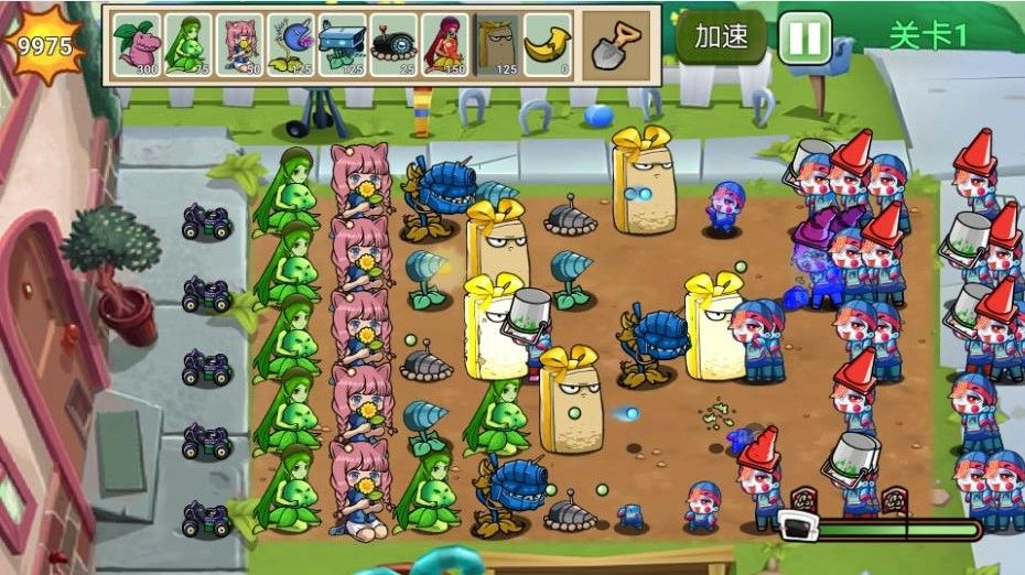 1. 面临众多关卡挑战,僵尸数量庞大,你得开动脑筋,想办法应对。