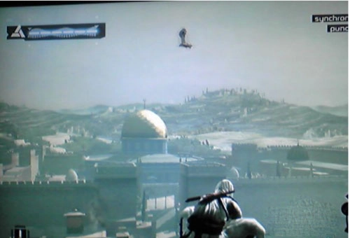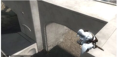 6、搞定他之后一直往地图所指示的地方跑,跑到城墙边后阿泰尔再次做出他的万年耍宝动作…… 跳楼!最后即可通关。