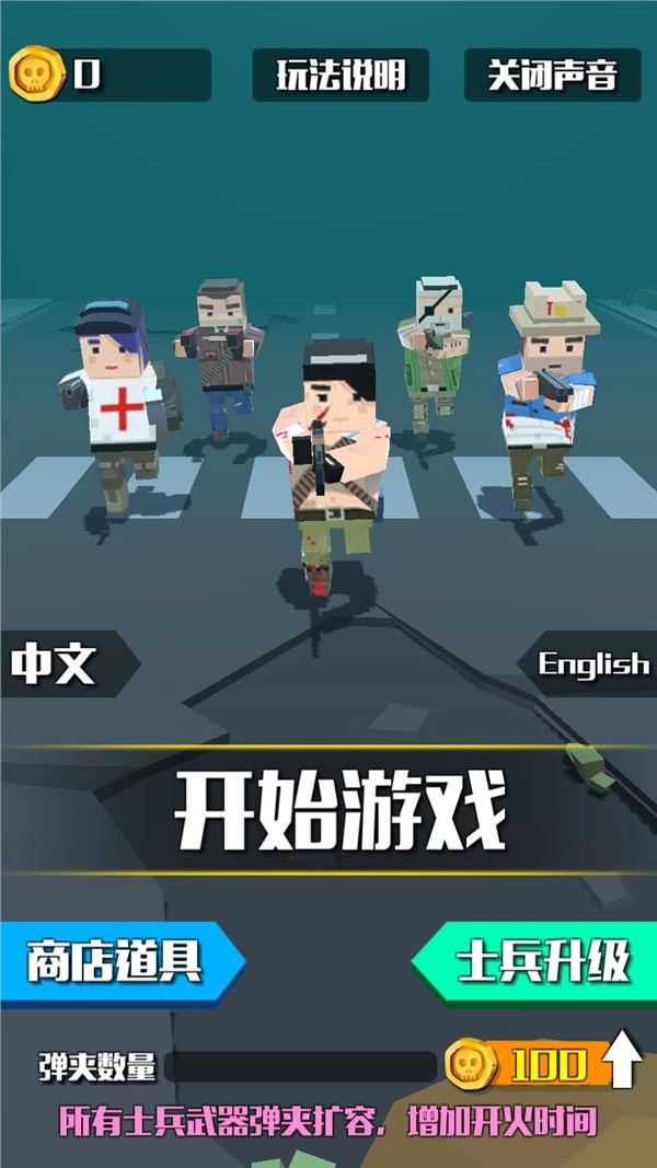 游戏的玩法十分简单,只需操控成员射击的角度,持续击杀僵尸即可。