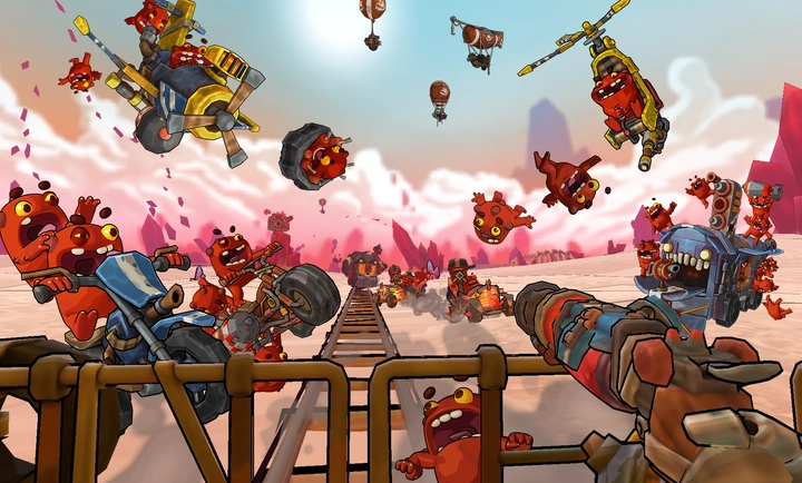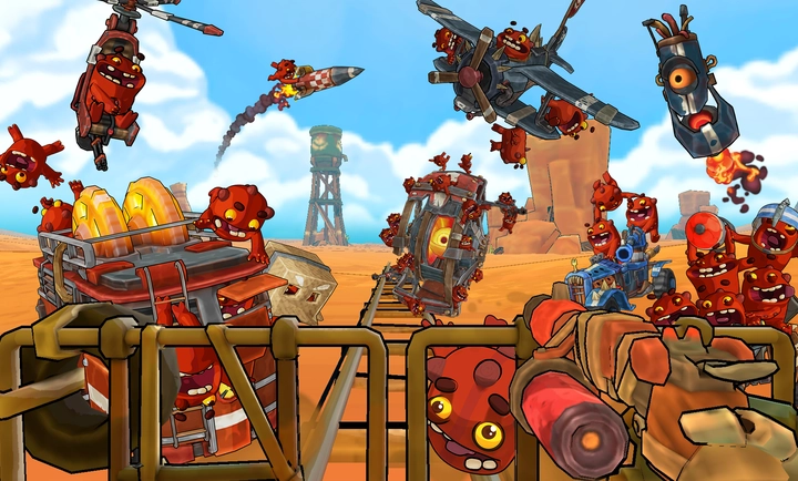 《油老虎》是一款充斥着燃油机车混战的疯狂VR射击游戏。在游戏里,你将开启一段穿越银杏大陆的史诗级机车之旅,精心打造属于你的终极武器,而后在旅途中不断射击、巧妙格挡并灵活闪避那成群结队的疯狂敌人,向着机器之神神殿奋勇进发,直至最终抵达。