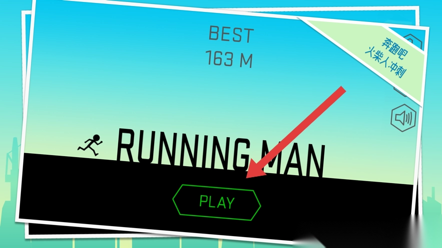 1、点击【PLAY】,开始游戏,操控火柴人在赛道奔跑,注意前方障碍(如悬空钢梁),及时躲避。