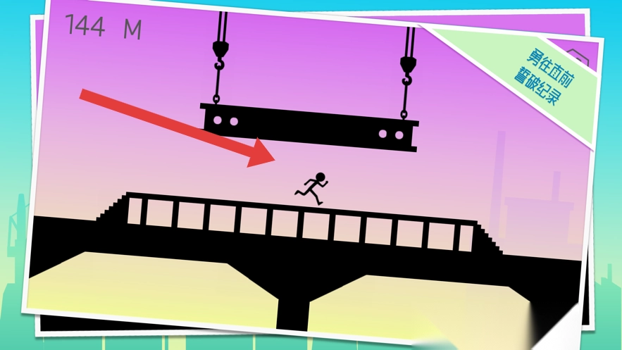 2、遇到大型钢梁障碍,提前规划路线,控制火柴人跳跃或绕行,避免碰撞,保持奔跑节奏。