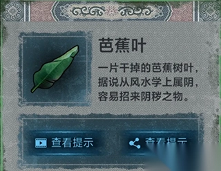按照提示,把收集到的道具放置在佛像手中。具体放置位置为:左手,上方放无面铜人,下方放红蜡烛;右手,上方放芭蕉叶,下方放死蝼蛄,佛像中间位置放照片。完成这些操作后,第二章即告结束。