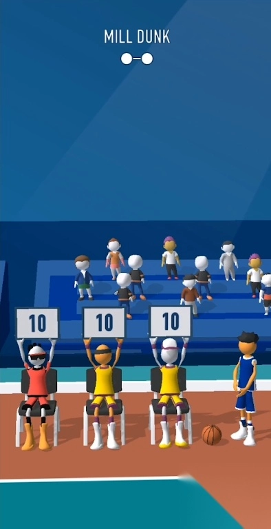 3、评分系统完成扣篮后,评委(举牌10分)打分,依据动作难度、完成度,获得星级评价,推进“MILLDUNK”等进阶挑战。