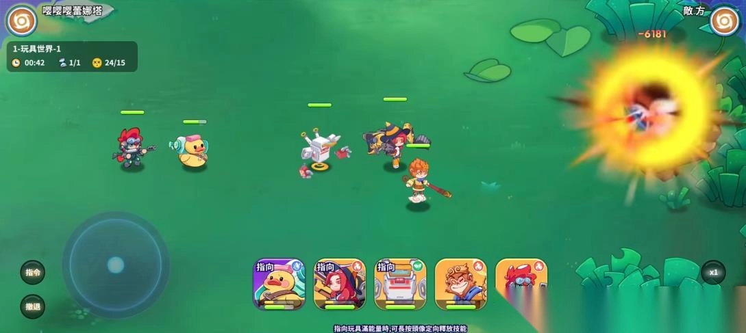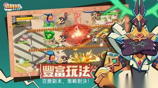 1、收集并培养各类玩具角色,组建5人冒险小队。 2、战斗中通过指令操作控制角色移动、释放技能、打断敌人等。 3、合理搭配阵容属性与战术站位,应对不同关卡的敌人挑战。
