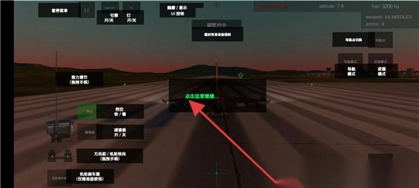 3、在飞行过程中,依据提示“点击这里重置”,对战机姿态进行重置;通过界面按钮,来调控引擎、武器以及雷达,进而完成飞行任务,模拟真实的空战场景。
