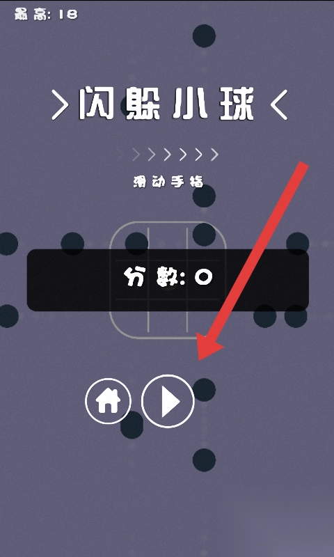 3、若遇到障碍物,游戏即告失败。此时,需在结算界面点击箭头所指的播放按钮,重新开启闪躲小球游戏。