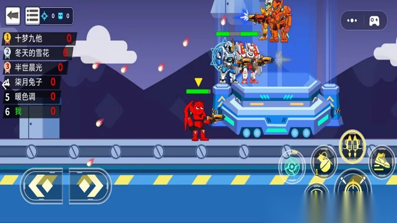 2、玩家通过虚拟摇杆控制机甲英雄的移动方向,点击屏幕上的攻击按钮,机甲英雄便会施展相应攻击招式。