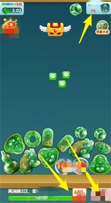 1、玩家要灵活操作滑动方向键,对翡翠进行合并,持续提升翡翠等级。