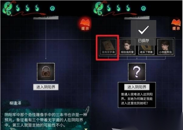 3、收集并保存【孔符无字谱】线索,结合柳蓬蓬关于阴阳界三本无字谱的提示,推理剧情关联。
