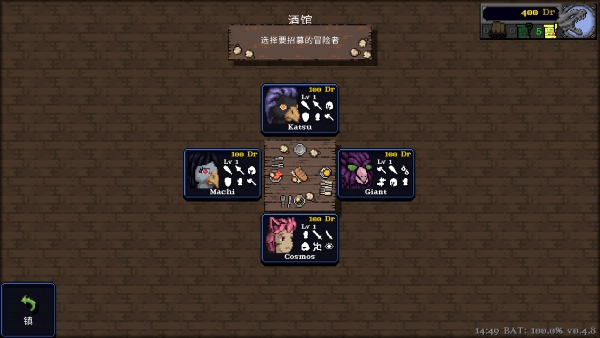 仓库旁边就是酒馆了,来这里招募自己的伙伴,里面的技能什么数据都能查看到。
