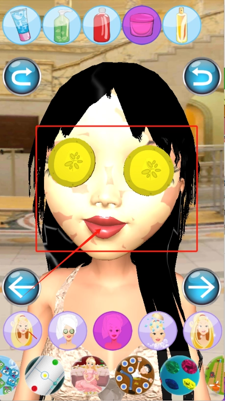 3、把妹子脸上的黄瓜片扒拉下来,底下能选新发型新妆容,换个造型立马不一样。