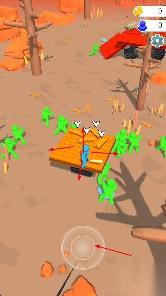 2、场景中分布木板、道具,靠近并收集,可能用于建造、升级,或解锁载具,提升生存、战斗能力。