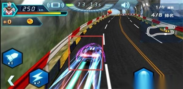 2、游玩的过程中通过方向盘操控赛车行驶,在弯道漂移积累能量,触发奥特曼铠甲技能对抗赛道上的怪兽阻碍。