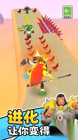 2、个性化角色系统极具深度,玩家能够凭借收集香蕉来解锁超过50种角色皮肤,涵盖搞怪动物到炫酷机甲等丰富类型。成就系统负责记录各类挑战数据,充分满足玩家的收集欲。