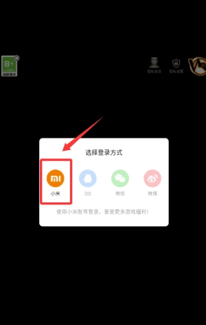 1、选择小米账号登录方式,点击红框标注的MI图标进入。