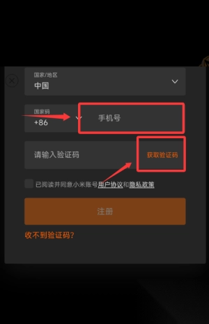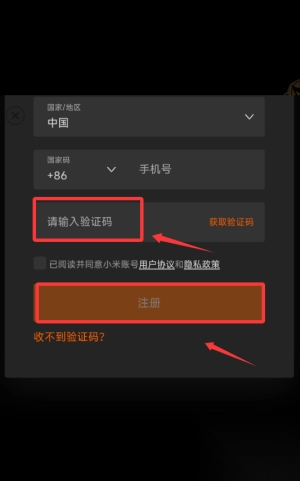 3、勾选用户协议后填写验证码,点击橙色注册按钮完成。