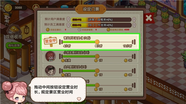 4、你能够掌控整个景点的运营,自由进行建造。