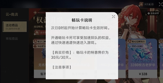1、仅在畅玩卡剩余生效时间小于180天的情况下进行续费,总生效时间才会得到延长;若畅玩卡剩余生效时间大于180天,开拓者便不能再购买畅玩卡。