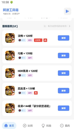 4、助力玩家一键解锁120帧图像质量限制,操作简便,完全免费,无任何收费项目。