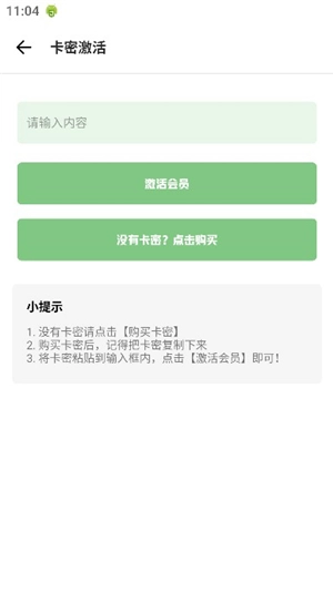 2、这里我们点击“卡密激活”,提示我们如果没有卡密,就需要花钱购买