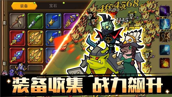 2、通过战斗中升级技能达到满屏清怪的爽快感,并通过宝石与装备的不同组合,具有丰富的策略性和可玩性。