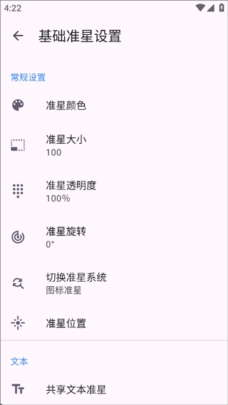 3、在准星设置一栏可以设置准星大小、位置、颜色和透明度