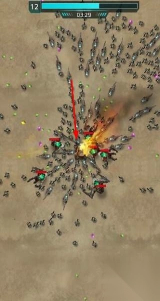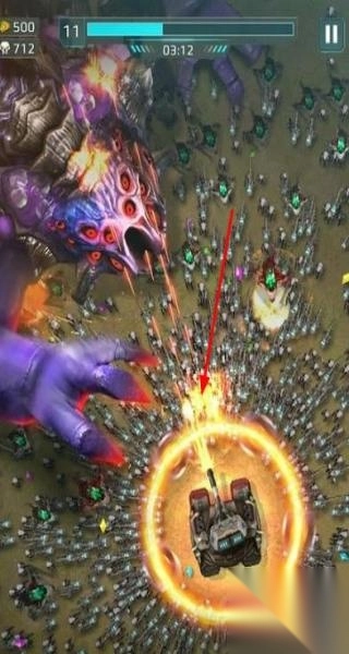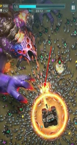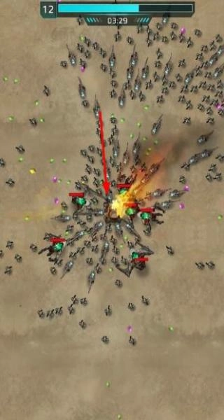 2、战斗开启,遭遇怪物军团之际,需灵活操纵机甲进行走位,避开致命攻击,长按射击键以持续输出火力,同时及时拾取战斗过程中掉落的能量核心,随后前往升级界面强化机甲的武器与防御系统。