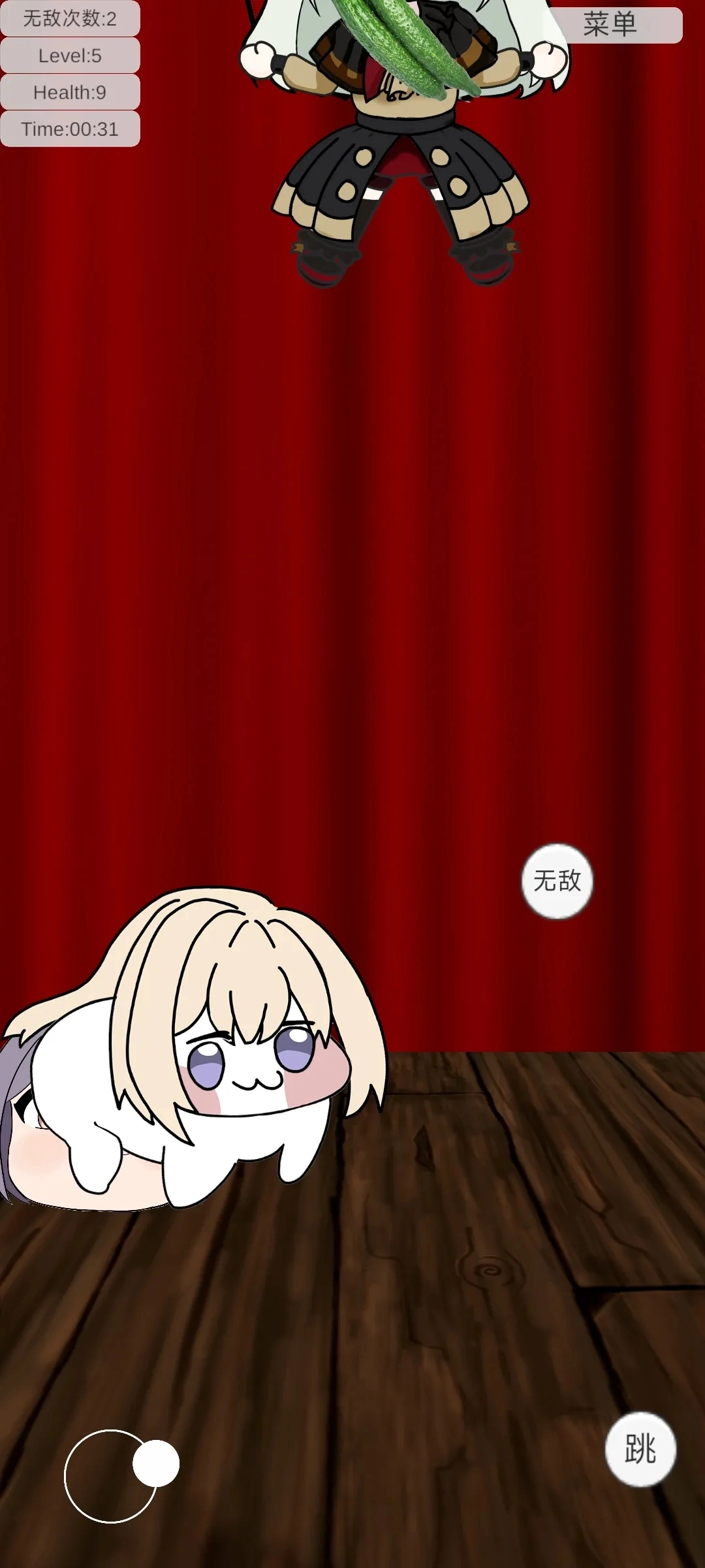 2. 左侧轮盘用于操控角色移动,右侧则为跳跃键与无敌键。