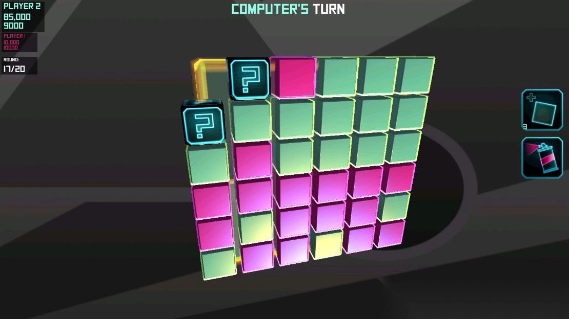 2、轮到己方回合,操作方块移动、组合,应对电脑方布局,争取消除或压制对方。
