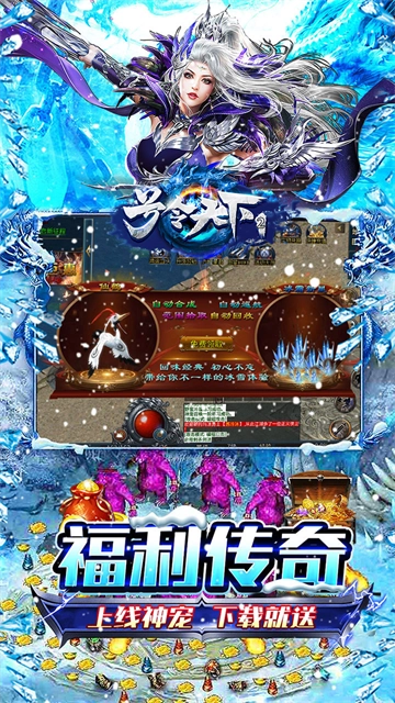 《号令天下2》,一款堪称经典的单职业复古传奇手游。它以复古传奇的风格精心打造,为玩家呈现出一个满是亲切感与回忆的热血传奇世界。游戏内设有经典的冰雪战斗地图,在这里,你不仅能尽情体验打怪升级这一基础玩法,还能与其他真人玩家同台竞技进行PK,一较高下,看看究竟谁的实力更为强大。而且副本挑战同样精彩有趣,不过这需要你与其他玩家携手组队,共同合作。游戏中打怪爆出神装的概率相当高,线上每日福利也十分丰富。还等什么,快来玩一玩《号令天下2》吧!