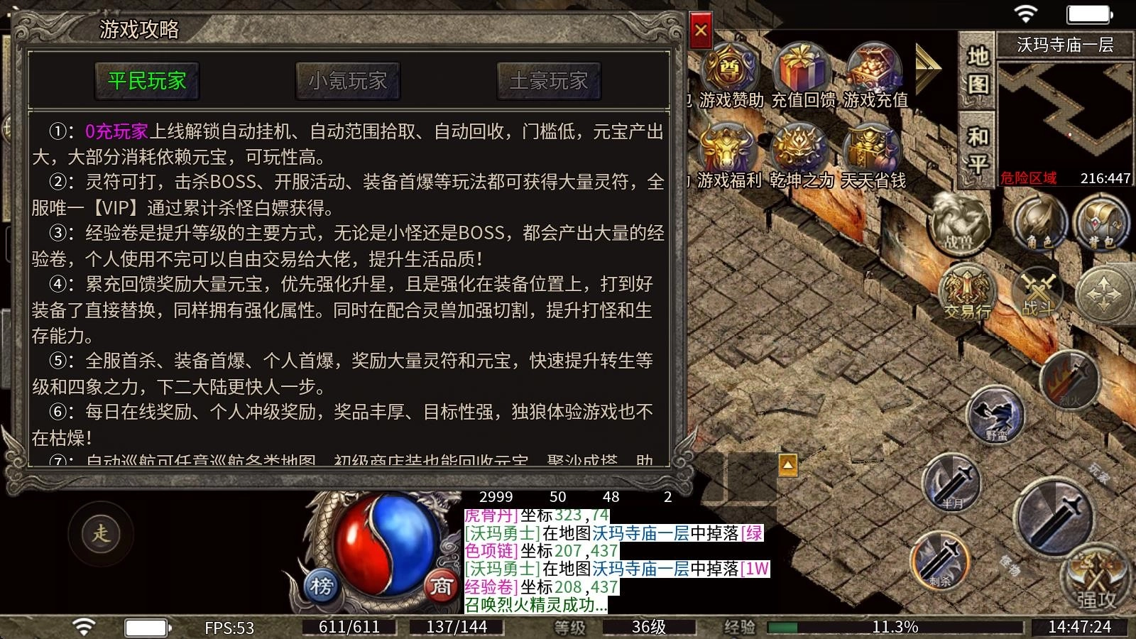 5、在全服范围内,无论是首杀怪物、首次爆出装备,还是个人首次爆装,都能收获大量灵符与元宝。这些奖励可助力你迅速提升转生等级,增强四象之力,让你在进军下一大陆时,比他人快人一步。