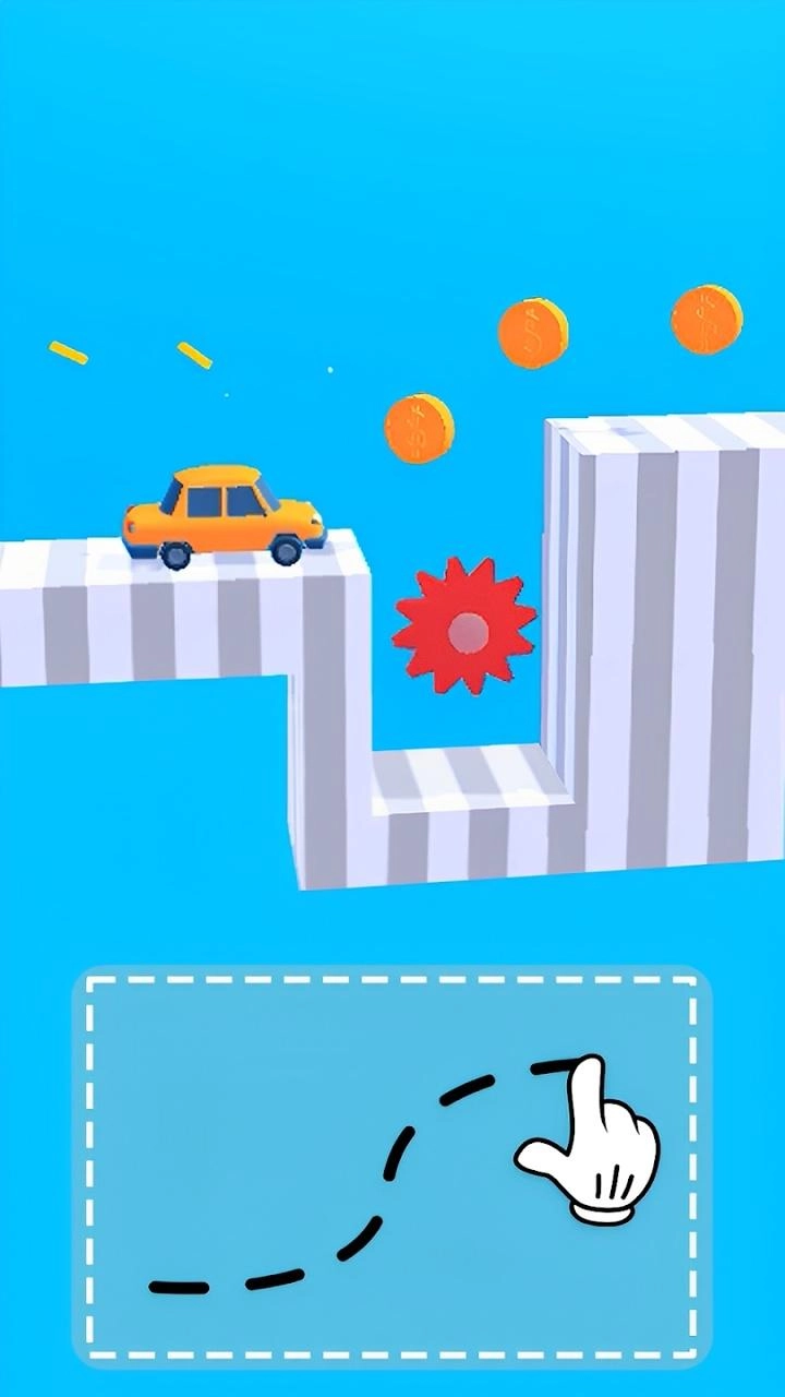 1. 在屏幕下方设置了绘画区域,玩家能够自由绘制线条,这些线条会即时转化为汽车的车身、轮轴或者支架。