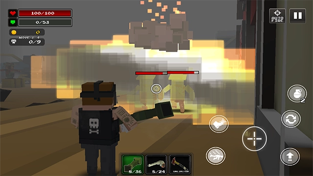 6、当进入关卡后,角色默认会出现在一座小镇之中,随后僵尸将陆续现身。玩家能够借助屏幕左下方的摇杆来操控角色移动。