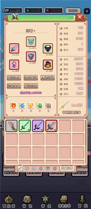 2、这里有很多冒险的玩法。每一场战斗都能提高你的战斗力。来为你的英雄配置更多不同的属性吧。