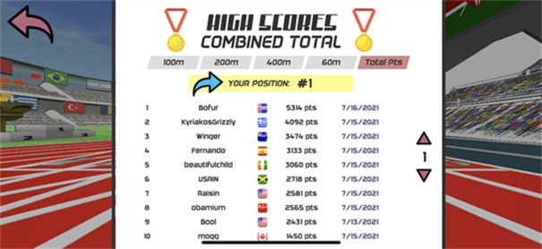5、在游戏里,你点击屏幕的速度会直接对运动员的奔跑速度产生影响。点击的频率越高,运动员奔跑的速度也就越快。