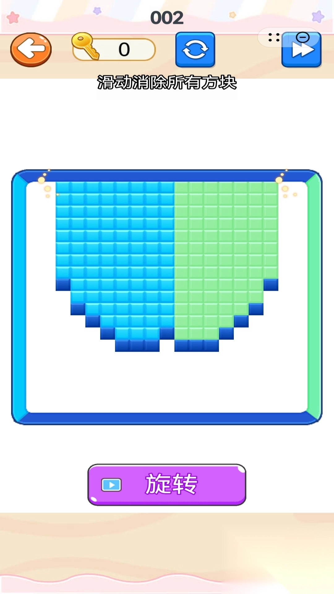 3、玩家可通过滑动操作,或者使用旋转按钮来改变方块状态,以此完成消除任务,丰富多样的内容颇具趣味。