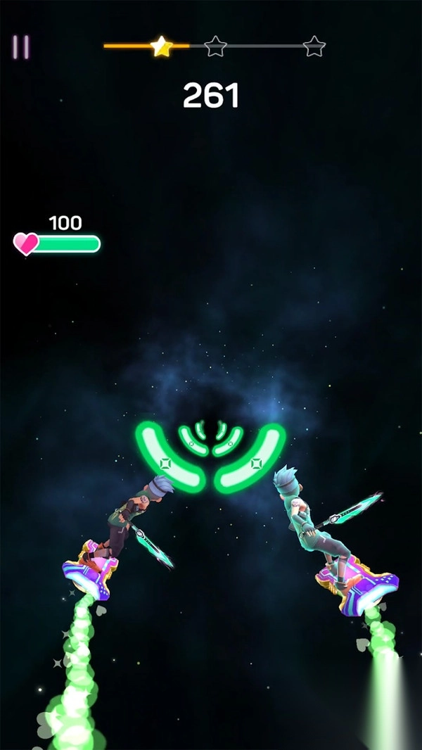 2、角色腾空后,需在落地瞬间精准踩中节拍,若能连续达成完美判定,则会触发特效。