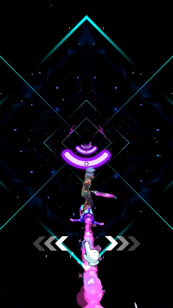 1. 紫色的能量墙出现,高频旋律催生出橙色的加速环,需依据颜色频谱来提前预判走位。