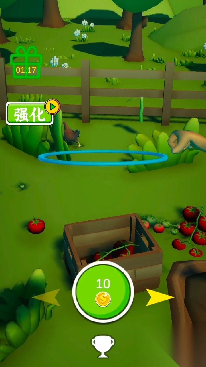 1. 该游戏设定在农场场景下,玩家将扮演农场主,任务是找回逃跑的动物。这就要求你反应敏捷,迅速抛出套圈。