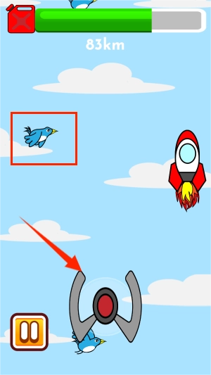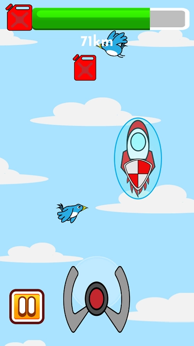 2、利用虚拟方向键调整火箭运行轨迹,注意闪避空中飞行的鸟类及其他障碍物。