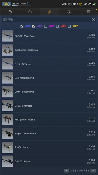 3、市场:可购买任何符合所需品质的武器或刀具!您既能够按名称搜索皮肤,也能在五个武器类别中浏览皮肤。注意:市场上的商品价格会高出50%,因此购买前需谨慎抉择!