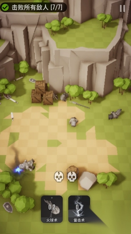 2、拖拽火球或雷击图标攻击敌人,完成击败任务。