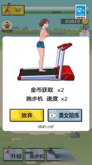 1、进入游戏后先选择合适的锻炼方式,比如跑步机或健身训练,提升角色的基础跑步能力与耐力。
