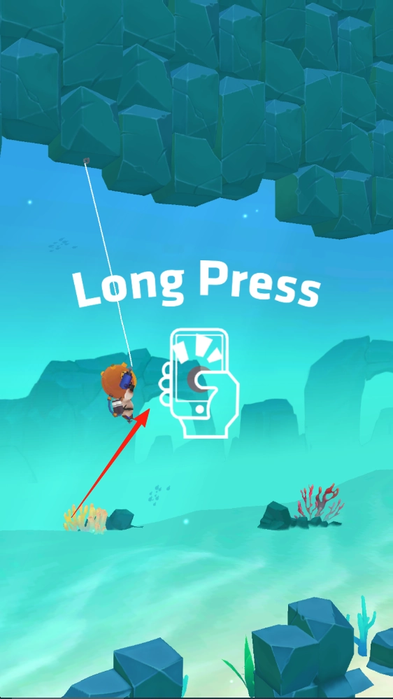 1、长按屏幕积蓄力量,控制角色借助绳索摆动,瞄准时机松手让其飞跃。