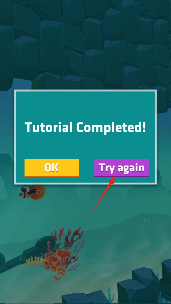 3、完成教程后,可点“Try again”重复练习,熟练长按松开的操作节奏。