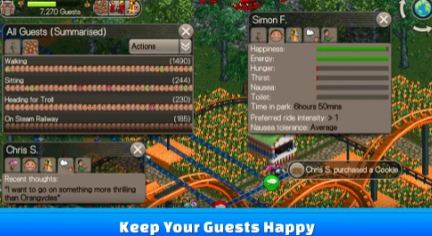 1、最正宗的游戏玩法,经典风格的特色等距图形和原创游乐园音乐和声音效果。